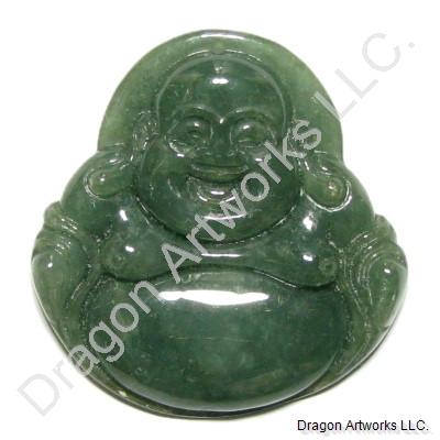In the auspicious carved dark green jade Buddha pendant, you see this man has got elongated ears and a very round face. Such an appearance is considered lucky in Chinese culture. This beautiful pendant is an ideal lucky charm for you. Buddha has got a very lucky appearance, this pendant can function as a lucky charm.