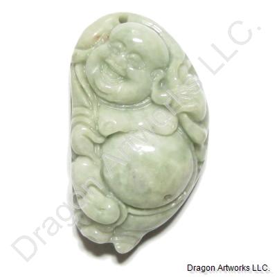 With the green carved jade happiness Buddha pendant, you feel joyful every second in your life. This Buddha is always seen in China. People believe wherever he is, there is joy. He is beloved by all. The happiness Buddha is one of the most favorite gods in Buddhism, he brings joy to people.