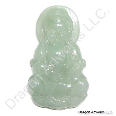 Since the ancient China, Kuan Yin has been admired as the goddess who can rescue people from the difficulties and disasters, and it play a same important role among the Chinese people as that of Jesus among the western people. It has become a tradition that most of the Kuan Yin has been carved with jade, for the quality and the color of the jade can better reflect Kuan Yin's kind and graceful figure.Especially, when you see the peacefully sitting Kuan Yin under a stressful situation, you'll find yourself calm down soon. The sitting Kuan Yin of this pendant looks so peaceful, she can create a tranquil environment for you.